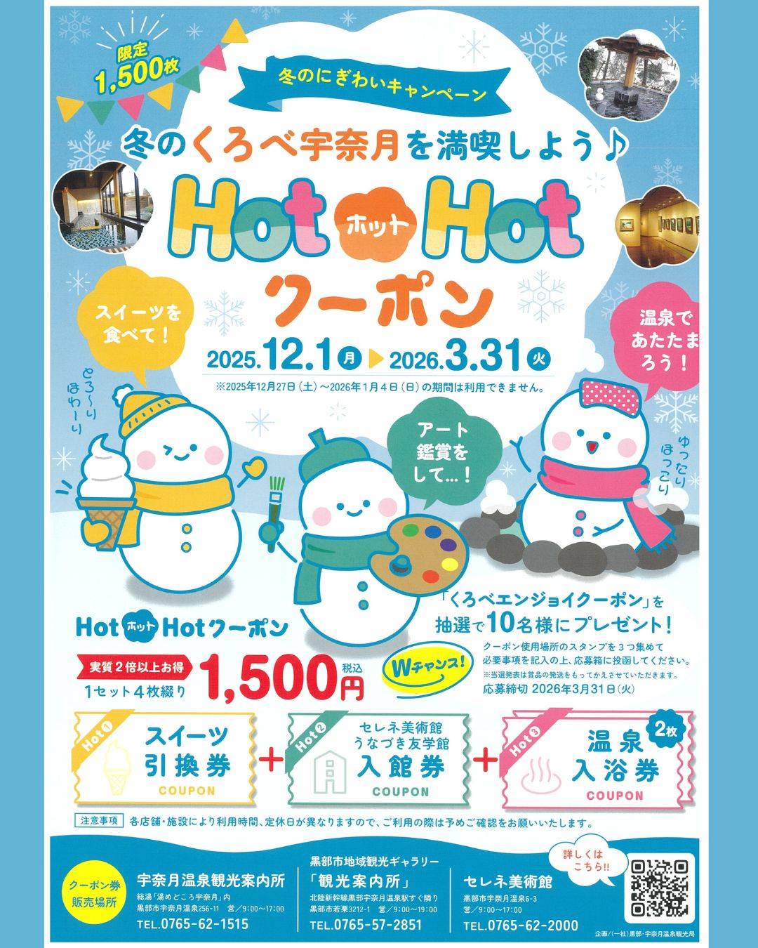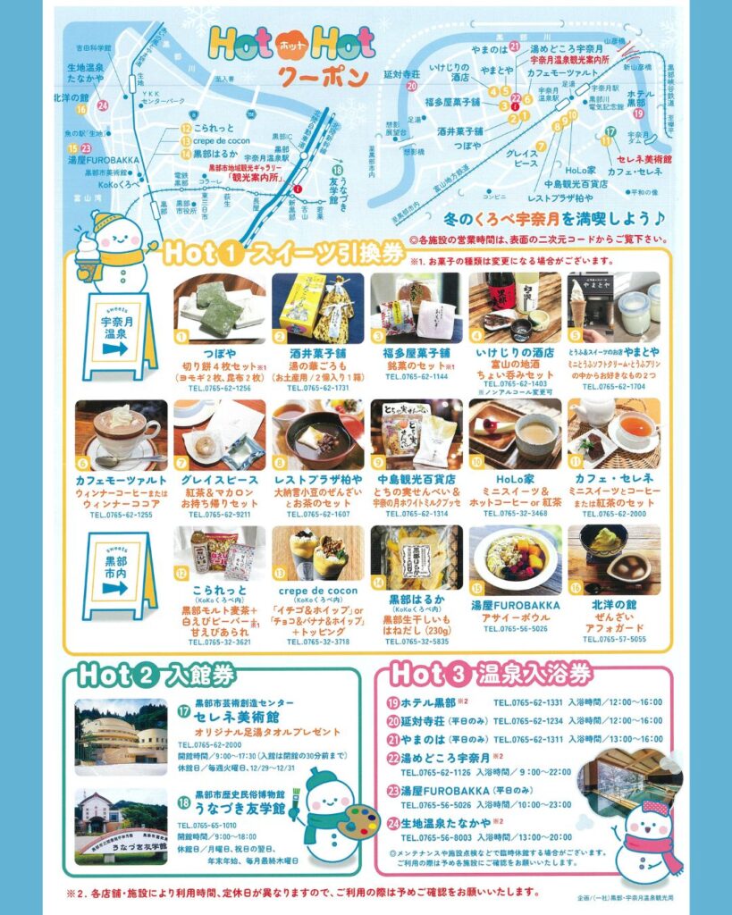 スイーツ、アート鑑賞、そして温泉。 冬の黒部の魅力をギュッと詰め込んだ、限定1,500枚の特別なクーポンです。