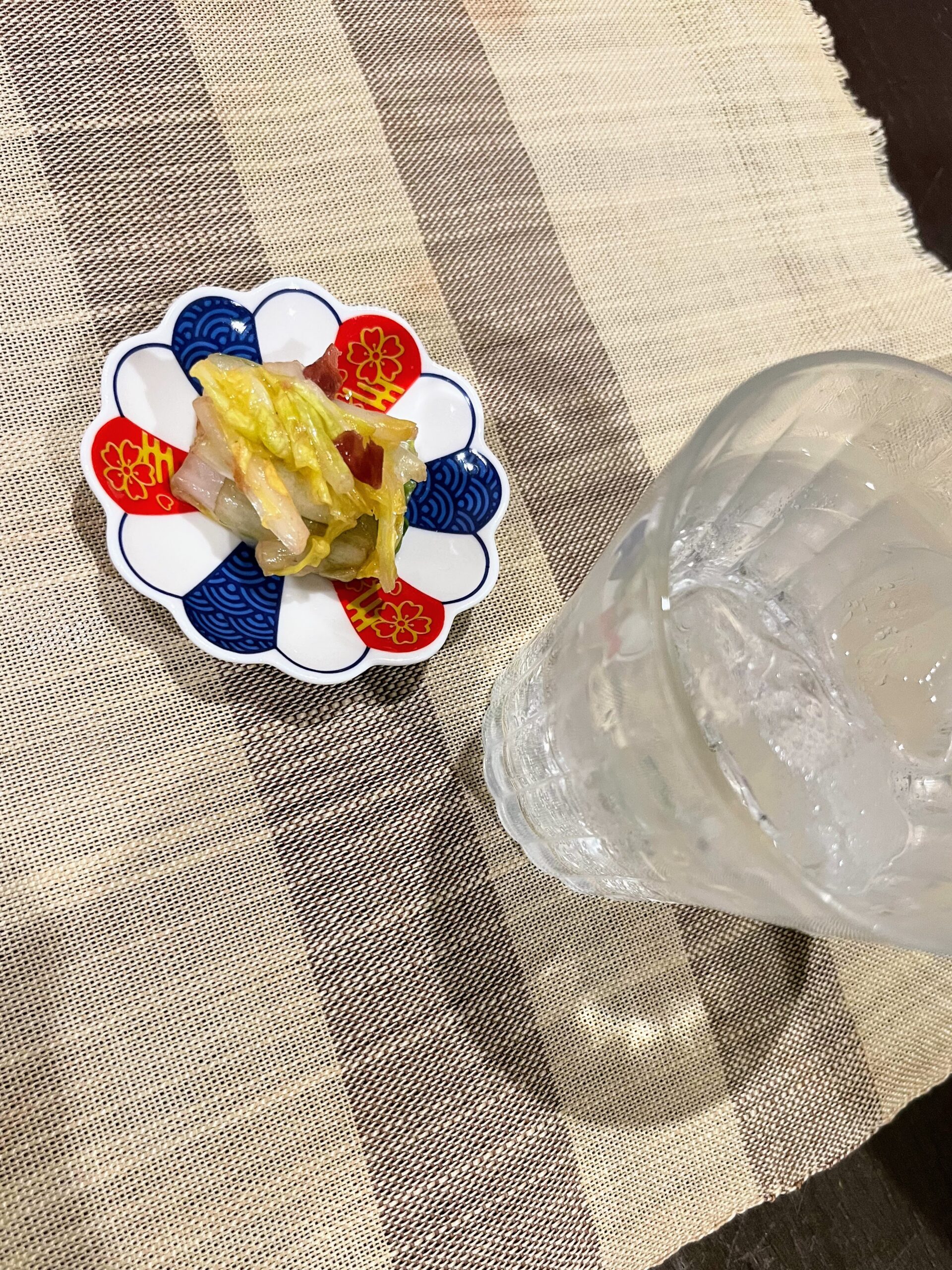 最後は「白菜梅干し漬け」。これも合います! CHA-CHA-CHAの爽やかな柑橘の香りと梅漬けという酸っぱい香り同士の相性が良いのだと思います!