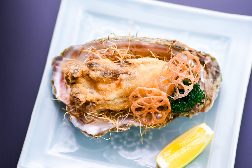 さらに、若旦那が外はカリッと、中はジュワッと揚げる「岩ガキフライ」もご用意。岩牡蠣の美味しさを余すことなく食べ尽くせる、牡蠣好きにはたまらないプランです。