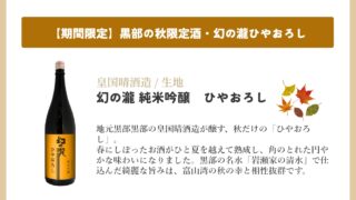 今回は、当館の秋の会席料理をさらに引き立てる、2種類の限定酒の入荷と、そのお酒と共に楽しむ富山の秋の味覚についてご紹介いたします。