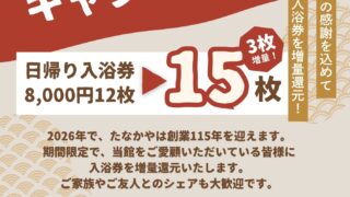 お知らせ 【初企画】創業115年の感謝を込めて!「たなかや湯ったり還元キャンペーン♨️」開催します!
